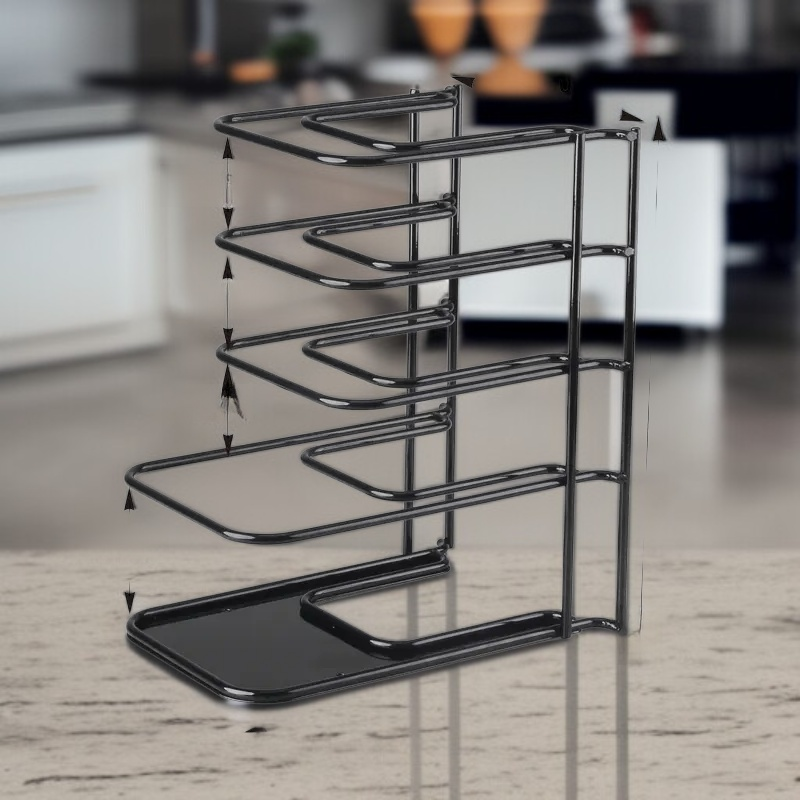 ● Adjustable tiers allow you to customize the rack for various cookware sizes, ensuring a perfect fit for everything from frying pans to saucepans.